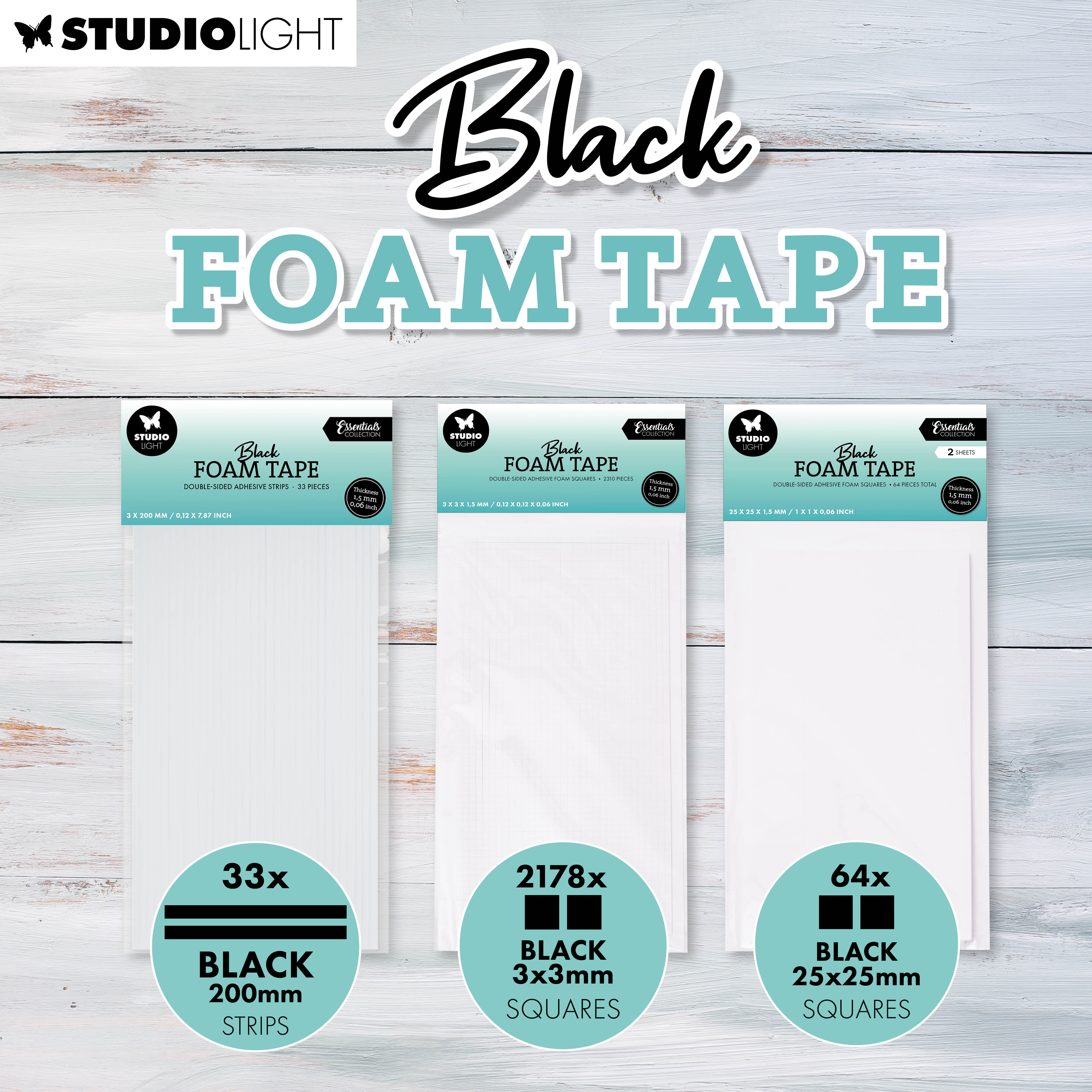 Diese zusätzliche Kollektion umfasst schwarzes Schaumstoffklebeband, Stempel mit englischem Text, Passepartout-Notizbücher und vorgestanzte Papierblöcke aus der Serie „Essentials“.